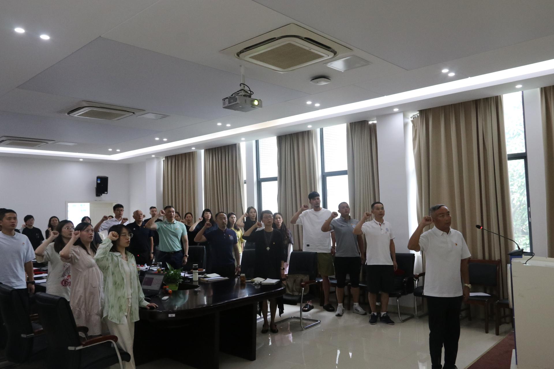 最后,周正宏带领全体师生党员重温入党誓词,共同在党旗下接受洗礼,进一步坚定为共产主义事业奋斗终身的信心和决心。