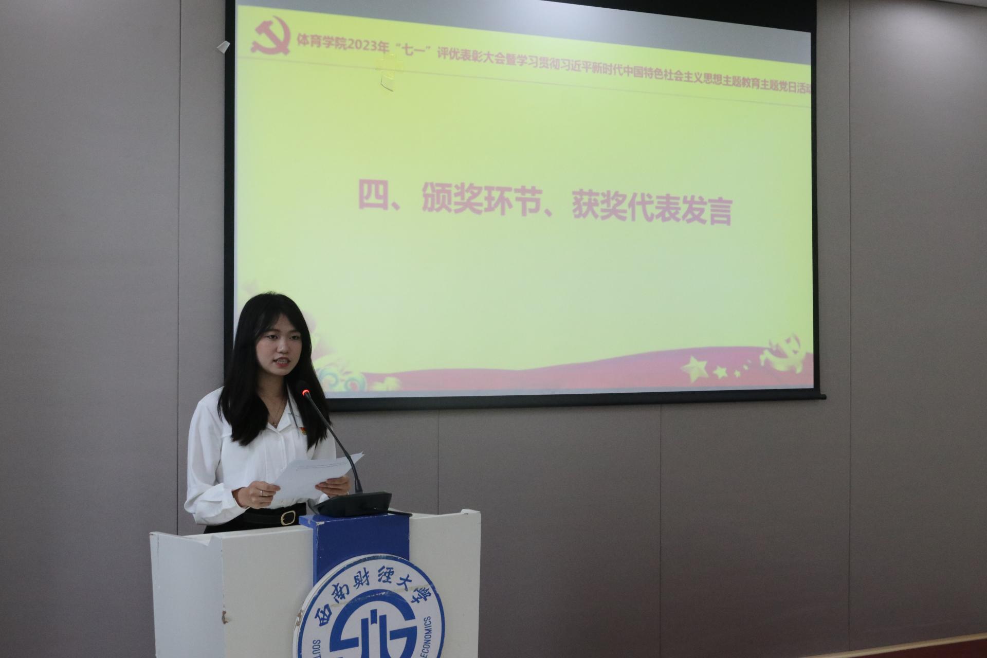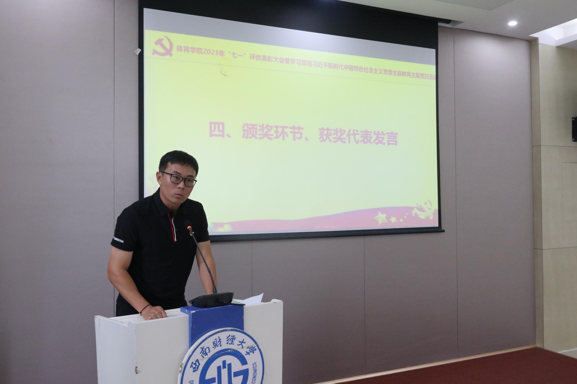 院党委副书记、纪委书记李治同志宣读学院党委2023年“七一”表彰决定,对过去一年立足本职岗位苦干实干学、任劳任怨、表现突出的师生党员予以表彰肯定。书记、院长为获奖师生颁奖。