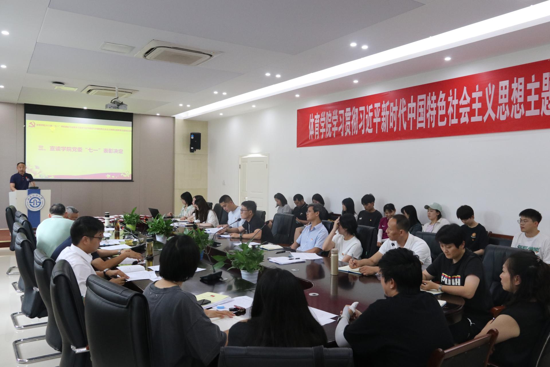 7月4日,新利在线平台在游泳池201会议室举行2023年“七一”评优表彰大会暨学习贯彻习近平新时代中国特色社会主义思想主题教育主题党日活动,隆重庆祝建党102周年,积极营造争做先进的良好氛围。全体师生党员参加,院长杨远波主持会议。