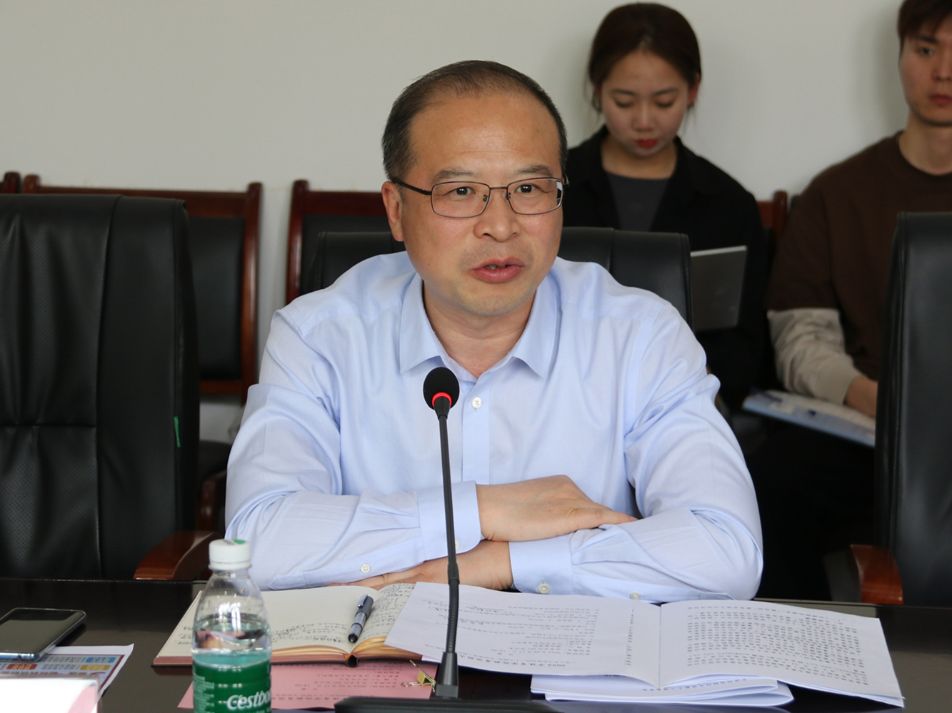 为深入学习贯彻党的二十大精神和学校十三届五次党代会精神,4月11日下午,新利在线平台在游泳池二楼会议室开展“深入学习贯彻党的二十大精神 全面推进‘新财经’战略升级”教育思想大讨论。学校党委副书记、副校长李永强教授莅临指导,学院党委书记周正宏主持会议,全院教职工参加。