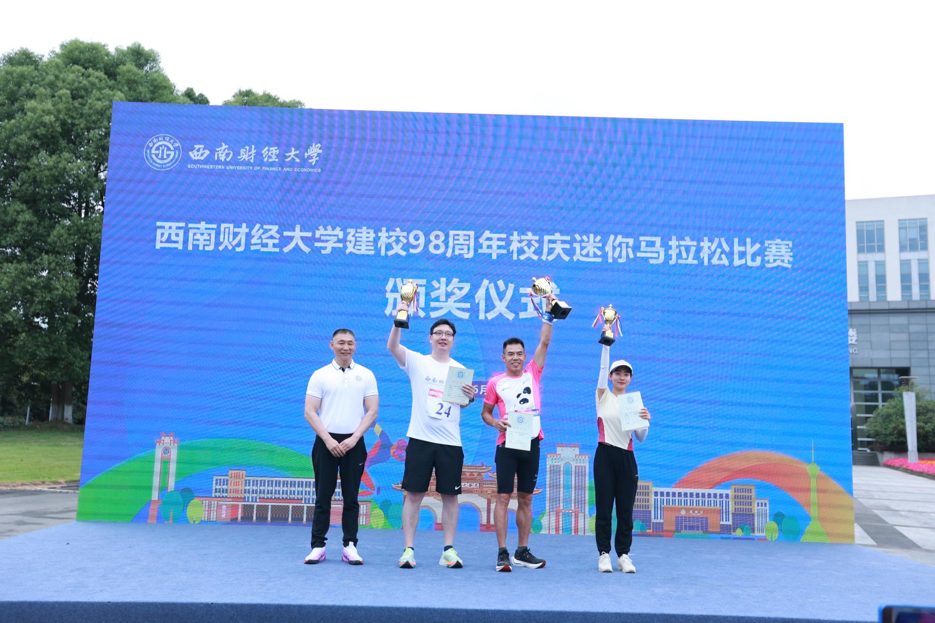 健康跑结束后举行了迷你马拉松混和接力赛和个人赛,300余名师生及校友参加角逐。新利在线平台院长杨远波为比赛鸣枪发令。李永强为获奖运动员和团队颁奖。
