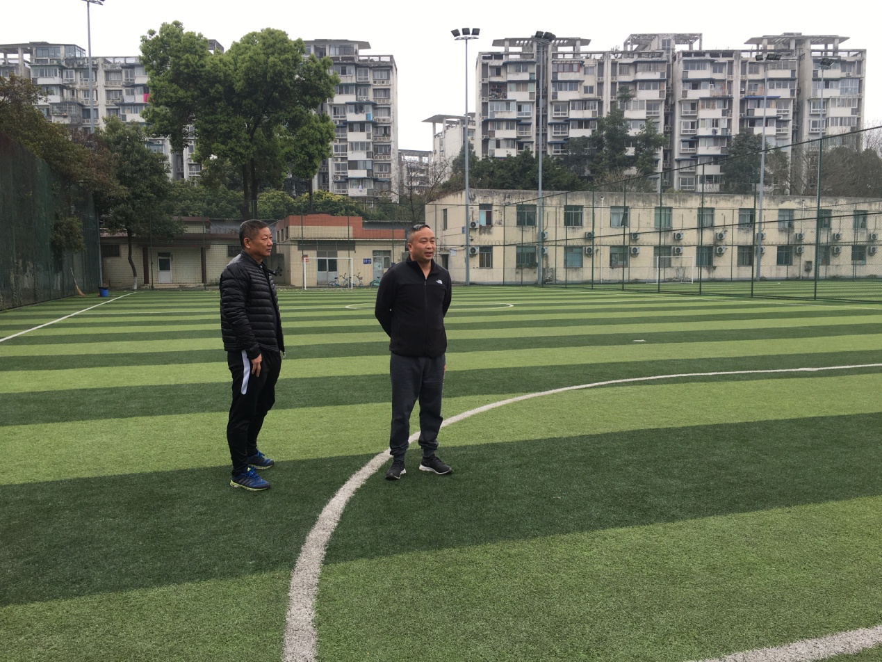 为确保新学期新利在线官网工作的安全有序进行, 3月9日、3月11日下午,副院长周正宏带领公共体育系、群体竞赛中心、竞技体育系、体育场馆中心负责人及相关老师,分别对柳林校区、光华校区的体育馆、篮球场、排球场、网球场、足球场、素质拓展场地等教学地点进行了深入、全面的安全检查。