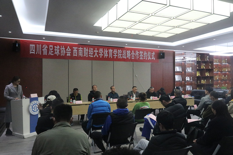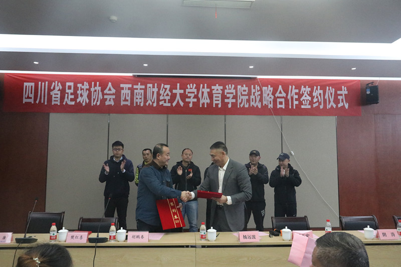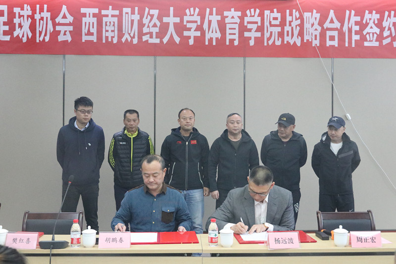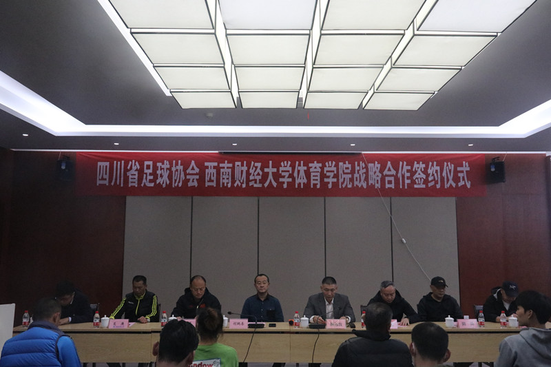 11月3日,四川省足球协会与西南财经大学新利在线平台战略合作签约仪式在柳林校区光华体育馆举行。四川省足球协会常务副主席兼秘书长胡鹏春、学院院长兼直属党支部书记杨远波分别代表双方签约。参加签约仪式的还有省足管中心副主任樊红喜,四川省足球协会副秘书长吴廉,新利在线平台副院长周正宏、阴涛,副书记李治,院长助理毛艳、陈丛刊及竞技体育系负责人,学校高水平运动队教练,男女足球队运动员等。