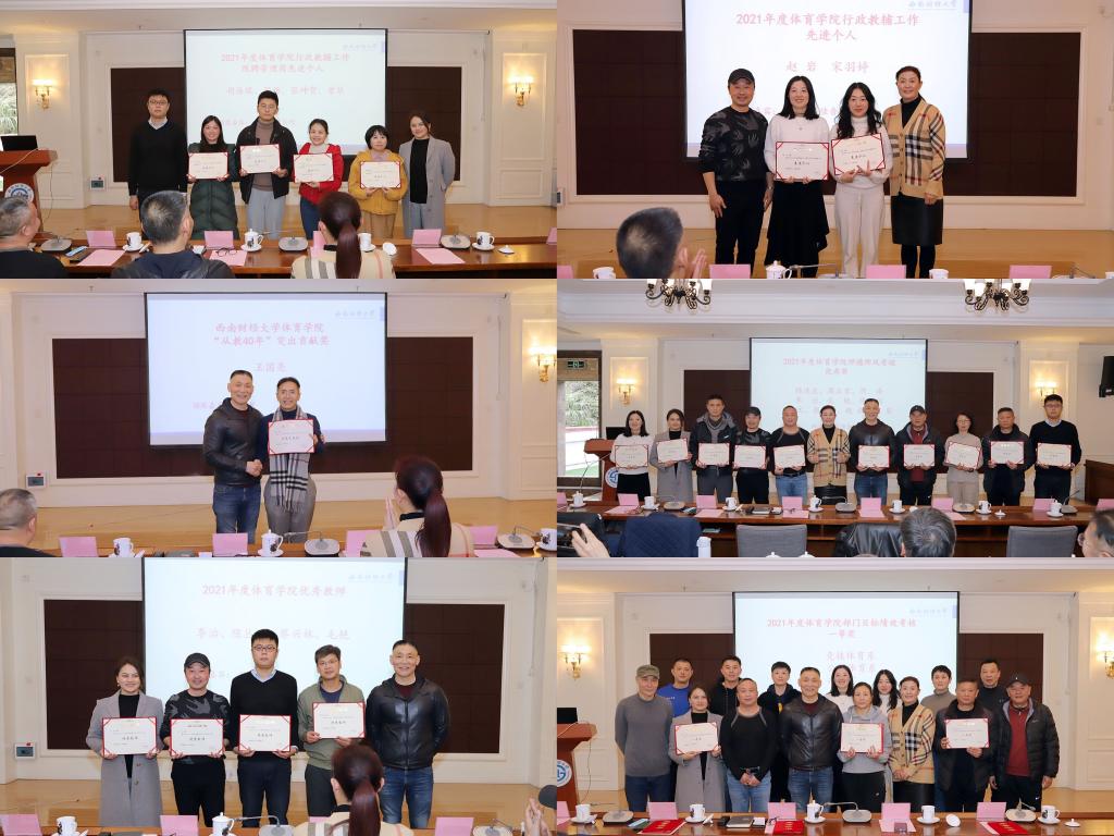 2022年1月17日下午,西南财经大学新利在线平台2021年年终总结会暨体育科学论文报告会在光华校区住友苑会议室举行。新利在线平台院长兼直属党支部书记杨远波,副院长周正宏、副院长阴涛,学院老领导范佳音、原教授委员会主任委员白耀东以及新利在线平台全体教师参加了会议。