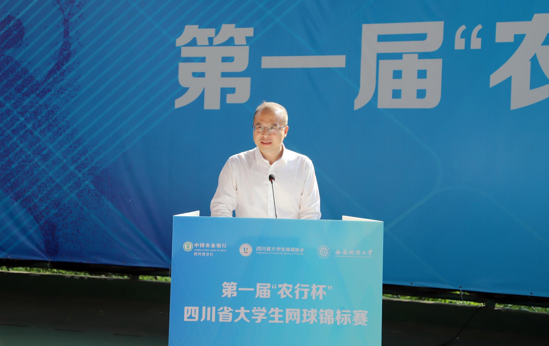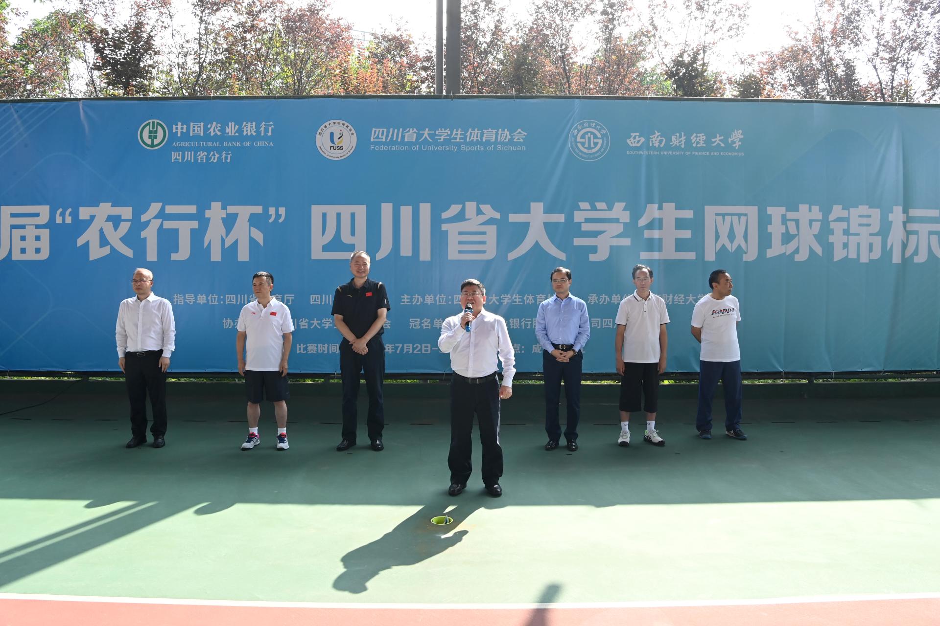 7月2日、3日,由四川省教育厅、四川省体育局指导,四川省大学生体育协会主办,西南财经大学承办,中国农业银行四川省分行冠名的第一届“农行杯”四川省大学生网球锦标赛在新利在线官网柳林校区举行。来自全省的47支代表队和700余名运动员、教练员、裁判员以及广大志愿者参与其中。四川省大学生体育协会总顾问、成都新利在线平台原党委书记刘青,四川省高等院校网球协会主席、成都信息工程大学原党委书记赖廷谦,中国农业银行四川省分行党委书记、行长刘加旺,中国大学生体育协会网球分会副主席、四川大学副校长张林教授,成都市网球协会副主席、中国农业银行成都分行调研员贺杰,新利在线官网党委书记赵德武,党委常委、副校长李永强出席开幕式。我院院长杨远波主持开幕式。
