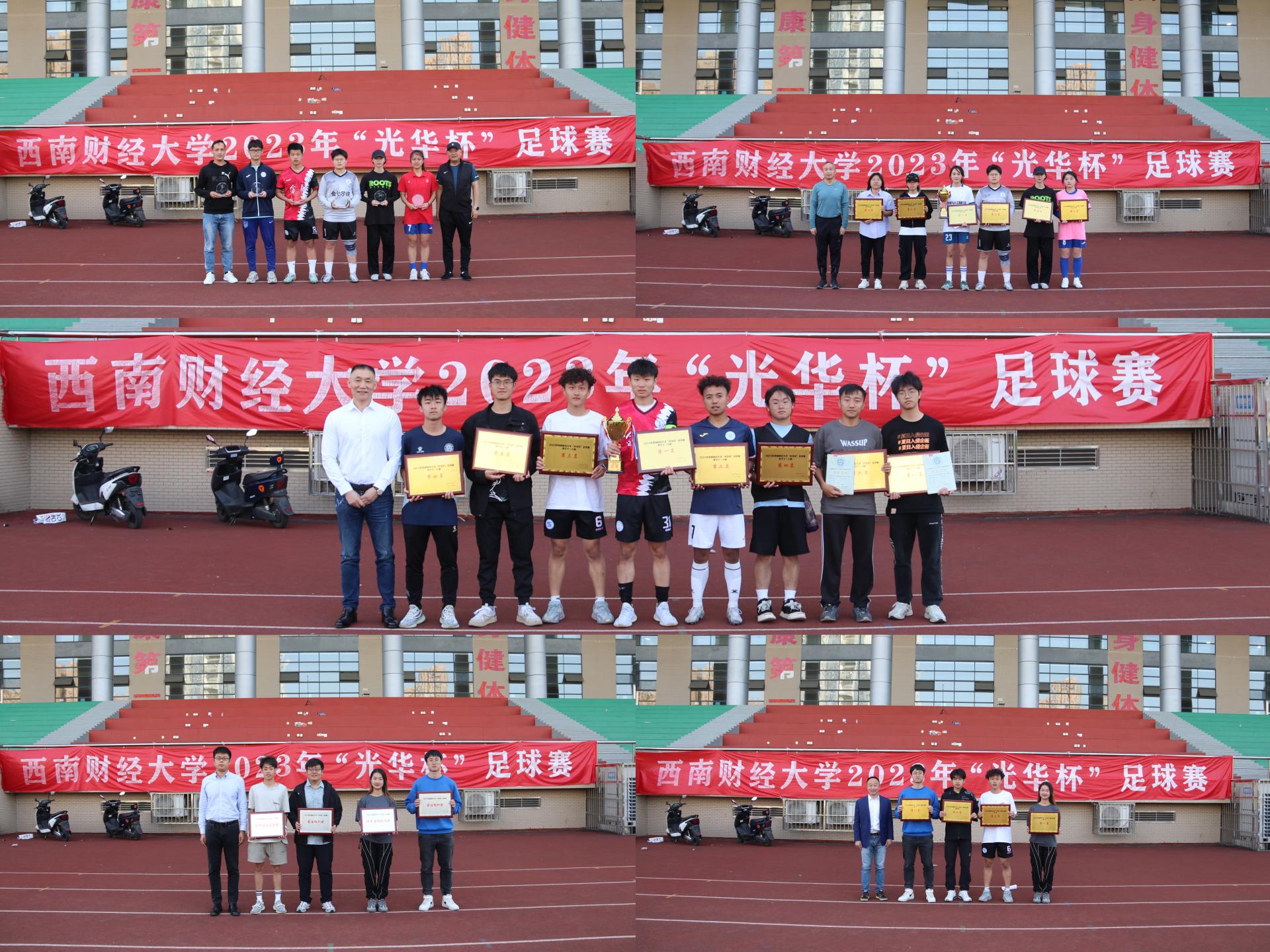 4月25日下午“礼赞新时代·奋进新征程,迎大运·迎百年校庆”2023年西南财经大学“光华杯”足球比赛颁奖仪式在晨曦足球场举行。新利在线平台院长杨远波,学院党委书记周正宏,副院长阴涛、陈丛刊,副书记李治为获奖学院以及个人颁发了荣誉证书及奖牌。