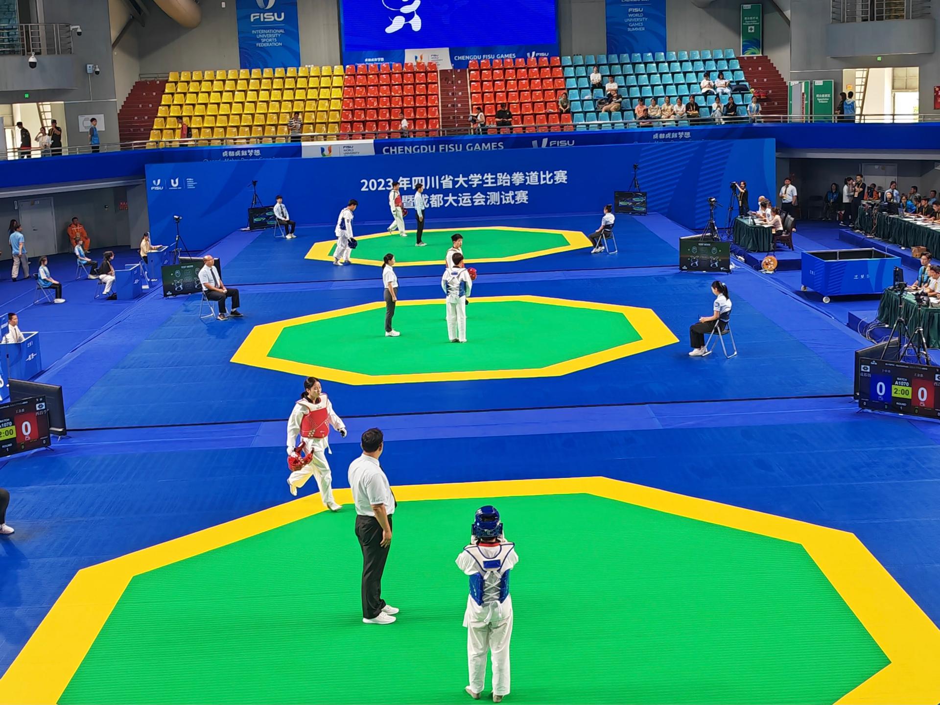 在2023年四川省大学生跆拳道比赛暨成都大运会测试赛中,由贺晓燕老师带领的校跆拳道队在获得甲组品势混双(第三名)、甲组品势女子团体(第三名)、甲组品势男子个人(第五名)及体育道德风尚奖。