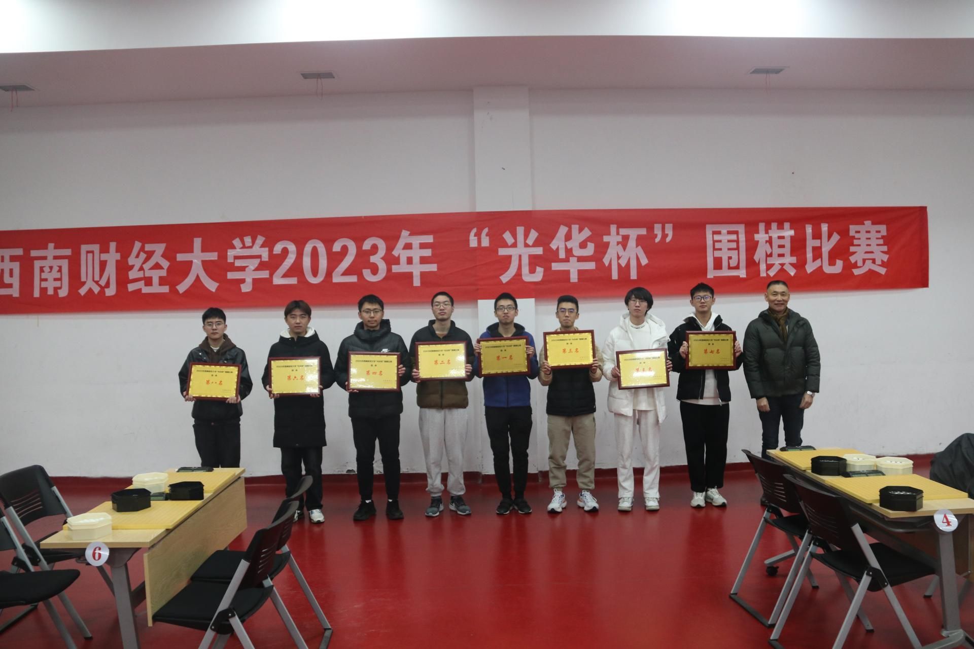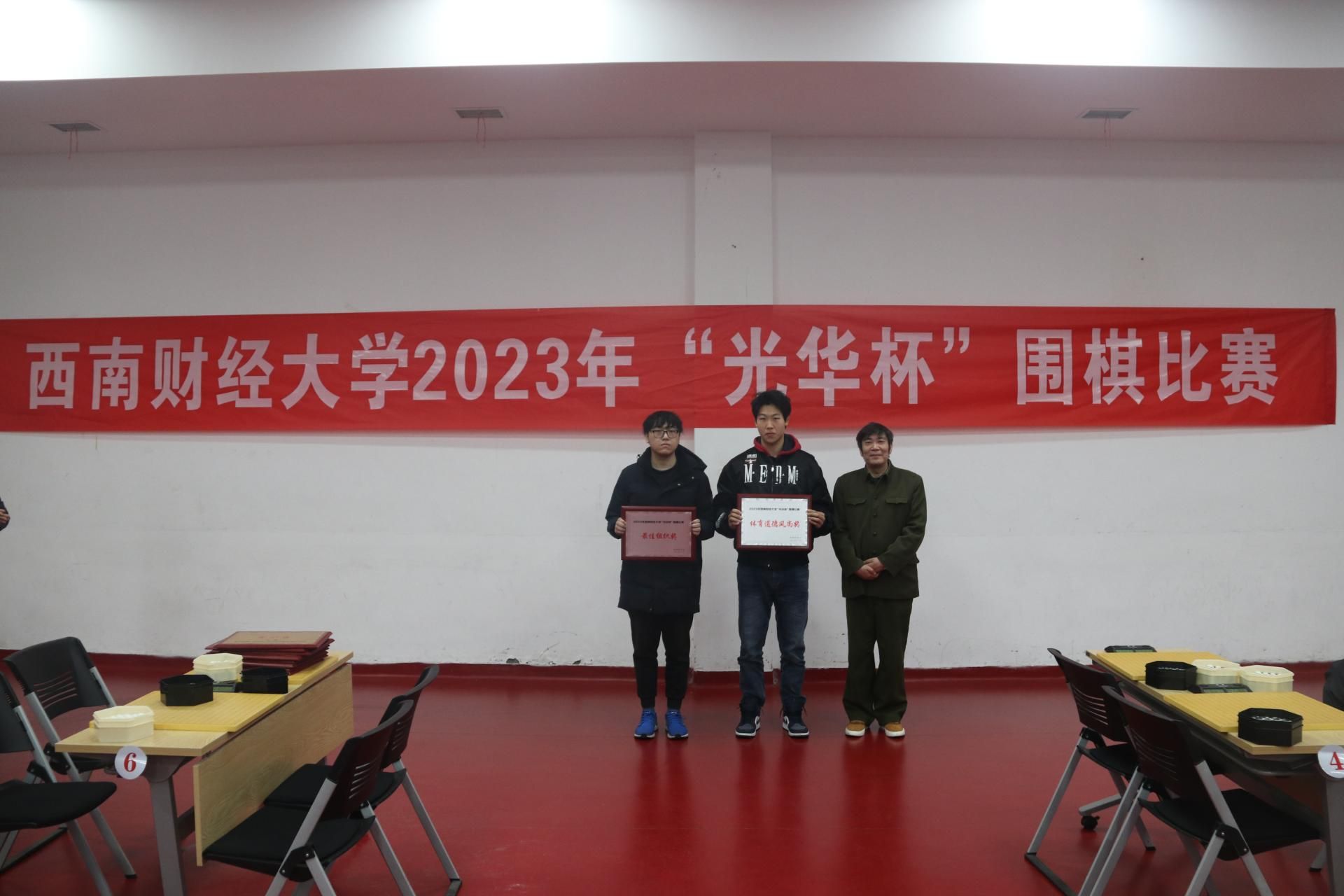 12月17日下午,“礼赞新时代·奋进新征程,迎百年校庆·铸西财辉煌” 2023年西南财经大学“光华杯”首届围棋比赛颁奖仪式在柳林校区光华体育馆举行。新利在线平台杨远波院长、阴涛副院长出席并为获奖单位及个人颁奖。