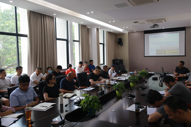 9月8日,新利在线平台在游泳池201会议室召开全体教职工政治理论学习会,本次政治理论学习会分为两个议题,一是传达学校中层干部读书班暨学习贯彻党的十九届四中全会精神专题培训会会议精神,二是学院领导领读导学《习近平谈治国理政》第三卷、习近平总书记教育重要论述讲义有关篇目。学院全体教职员工参会,会议由杨远波院长主持。