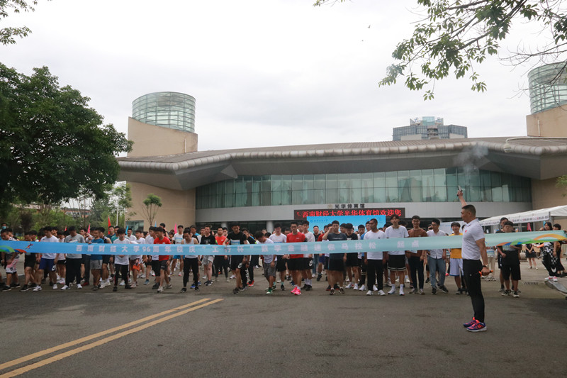 上午10点10分,杨远波、王刚分别为迷你马拉松赛男女参赛选手鸣枪,运动员从体育馆正门出发,经学生活动中心、通博楼、格致楼方向的创业大道跑两圈,再回到体育馆正门,全长4.21公里。途中设置了3个应急救援点,全程保障师生的健康安全。赛道上的师生宛如一道从黄浦江畔飞跃浣花溪旁点亮柳林华章的历史之光,照耀着西南财大96载弦歌不辍、兴学报国的光辉奋斗历程。活动最后,张邦富副校长和何晓涛行长为迷你马拉松男女前十名颁发了奖状及奖品。整个活动在欢快祥和的气氛中圆满落幕。