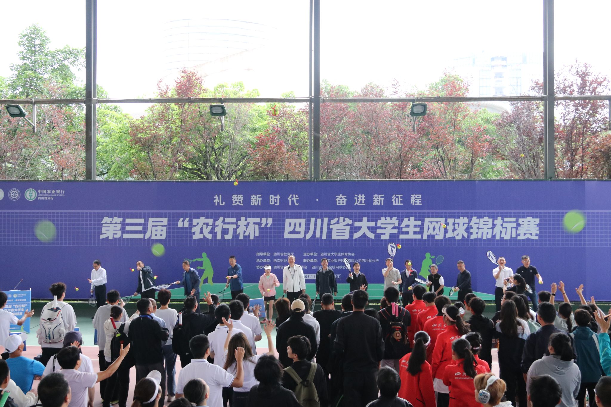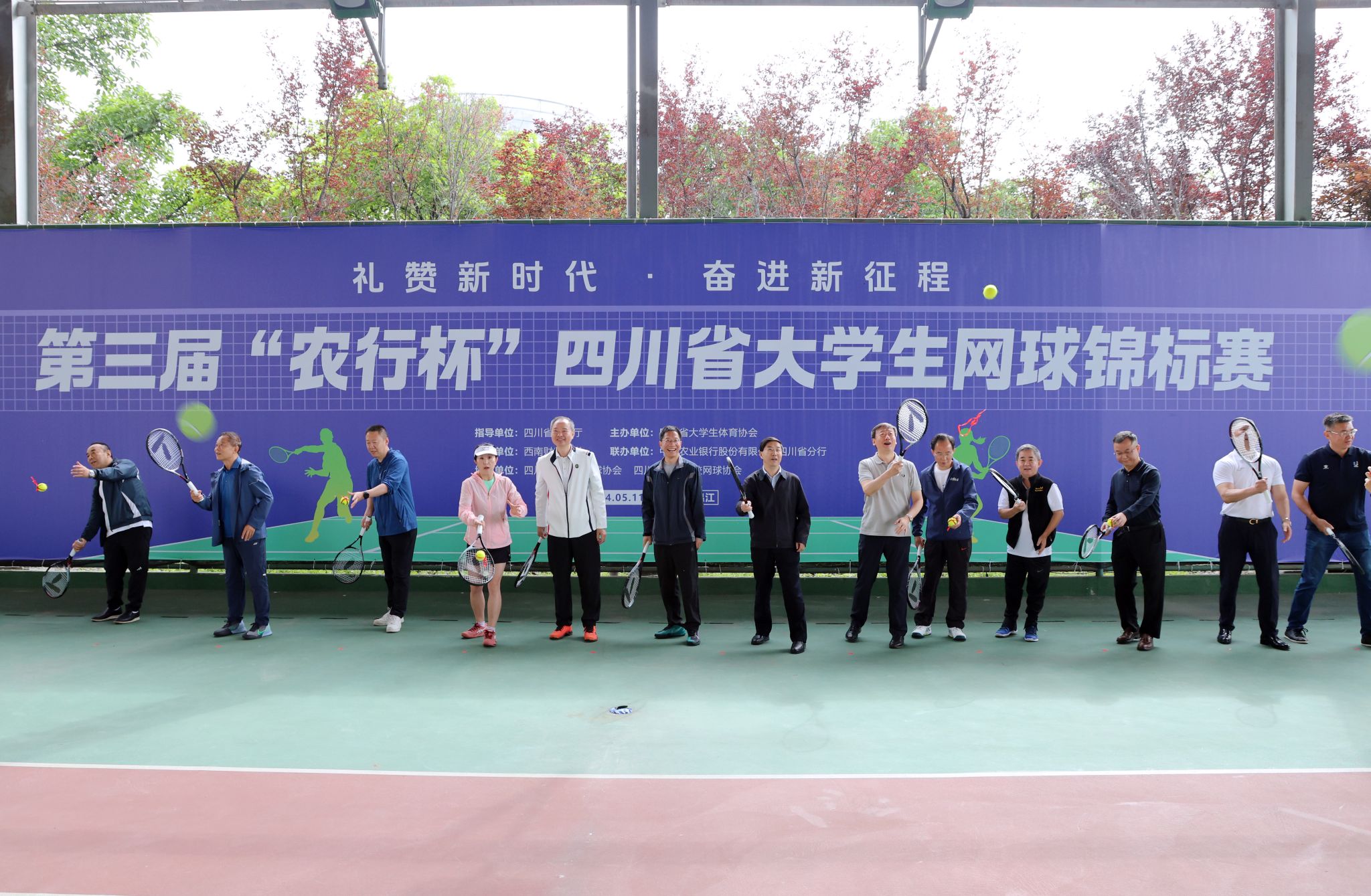 四川省教育厅副厅长石静,四川省大学生体育协会总顾问、四川省大学生网球协会主席刘青,四川省高等院校网球协会主席赖廷谦,四川省网球协会副主席、新华社四川分社原社长刘欣欣,中国农业银行股份有限公司四川省分行党委委员、副行长兼成都分行党委书记、行长王屹,中国农业银行股份有限公司四川省分行高级专家兼成都分行党委委员、副行长朱波,成都市网球协会副主席贺杰,四川省大学生体育协会会长、学校新利在线平台院长杨远波,四川省大学生体育协会秘书长、西南交通大学新利在线平台院长刘江出席开幕式,并为比赛开球。
