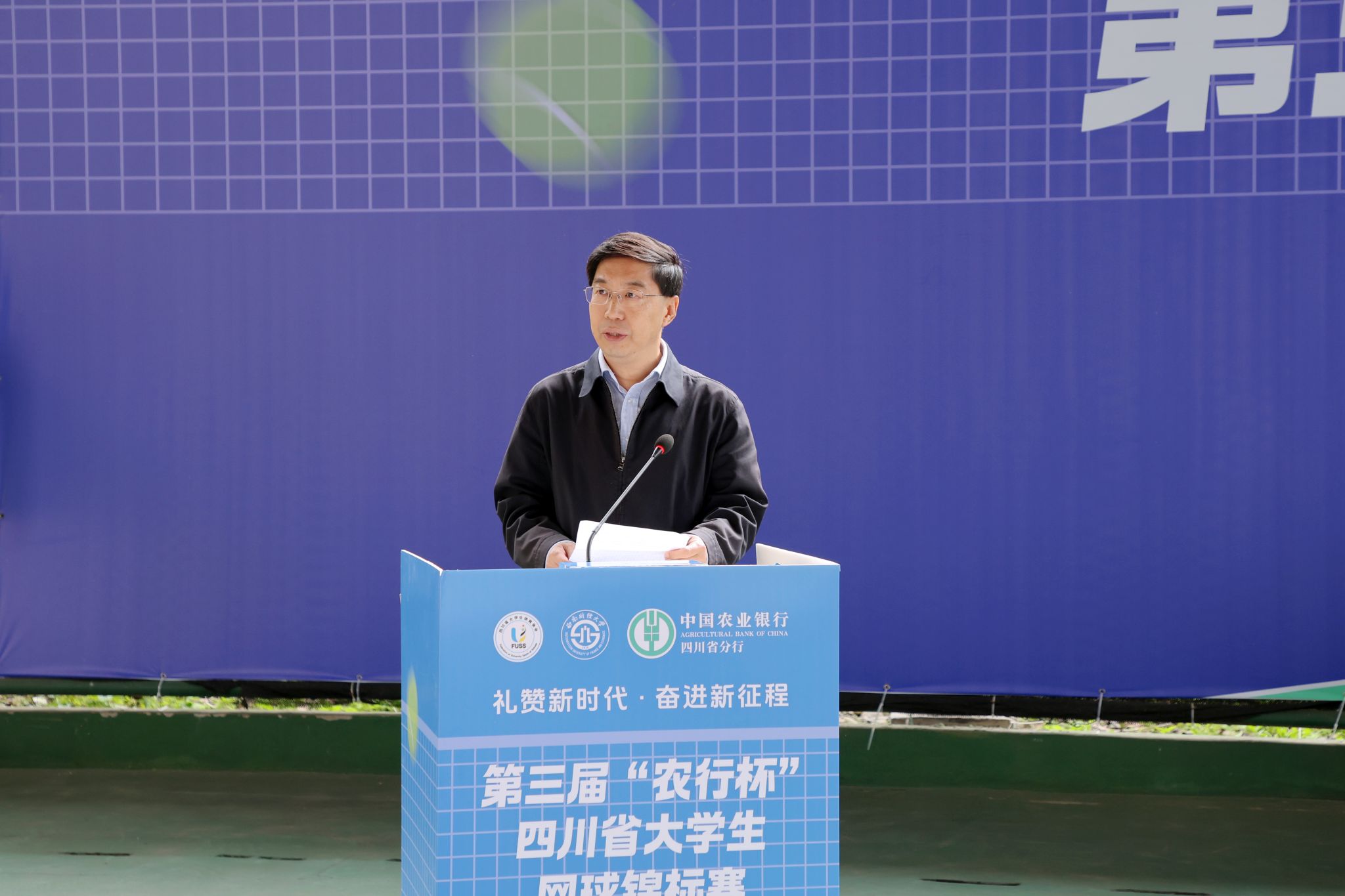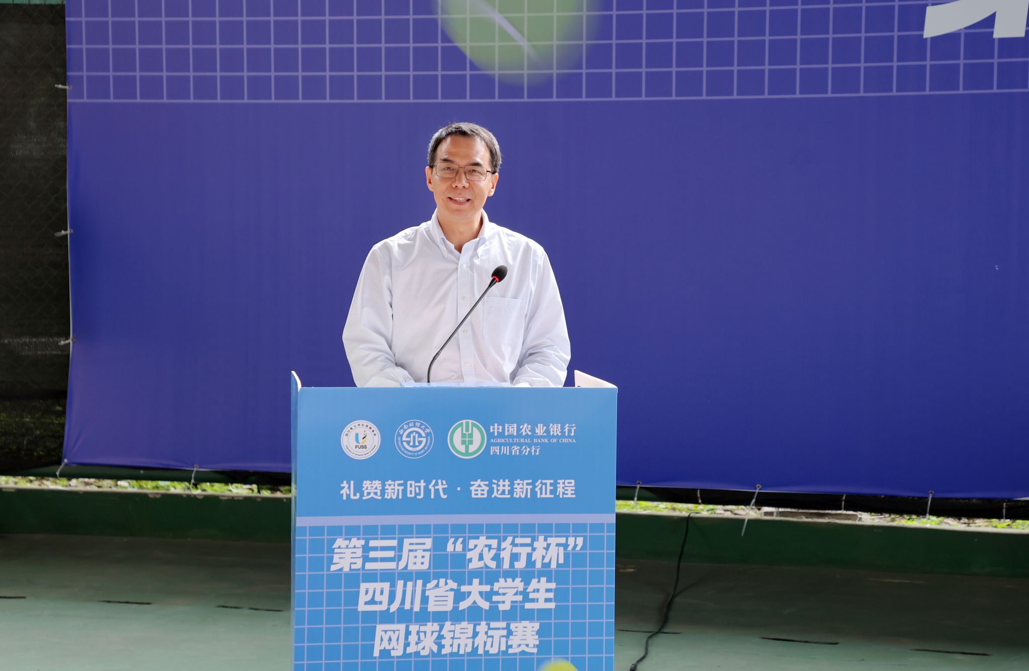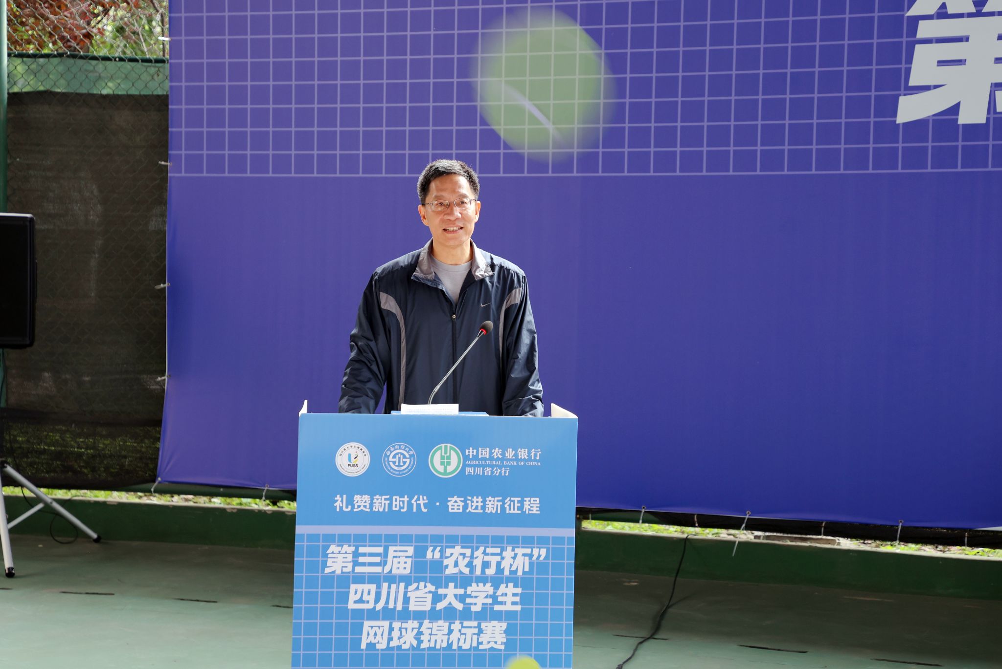 赵建军表示,“体育承载着国家强盛、民族振兴的梦想。体育强则中国强,国运兴则体育兴”。西南财经大学始终坚持把体育作为促进学生全面发展的重要举措,近年来,承办了第31届世界大学生夏季运动会排球项目比赛、中国大学生篮球联赛四川省基层赛、四川省“贡嘎杯”青少年体育联赛、“农行杯”四川省大学生网球锦标赛等赛事,学校足球、篮球、网球等项目在国内有关重要比赛中取得了优异成绩。本次锦标赛既是四川高校网球竞技水平的集中汇演,也是竞技体育事业发展成果的集中展示,更是践行体育强国战略的生动实践,必将有助于促进竞技体育与群众体育、学校体育与全民体育有机融合。他希望全体运动员释放激情、燃烧斗志、享受比赛、收获友谊,全体裁判员和工作人员恪尽职守、公正裁决、真诚服务,让大家在健康、活力和创造中度过一段美好而有意义的时光。