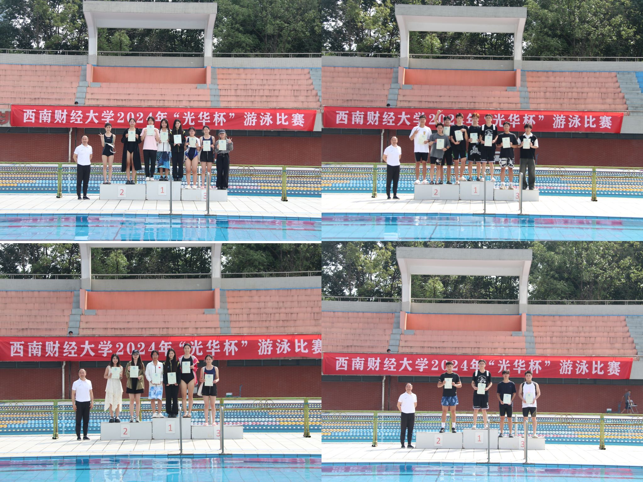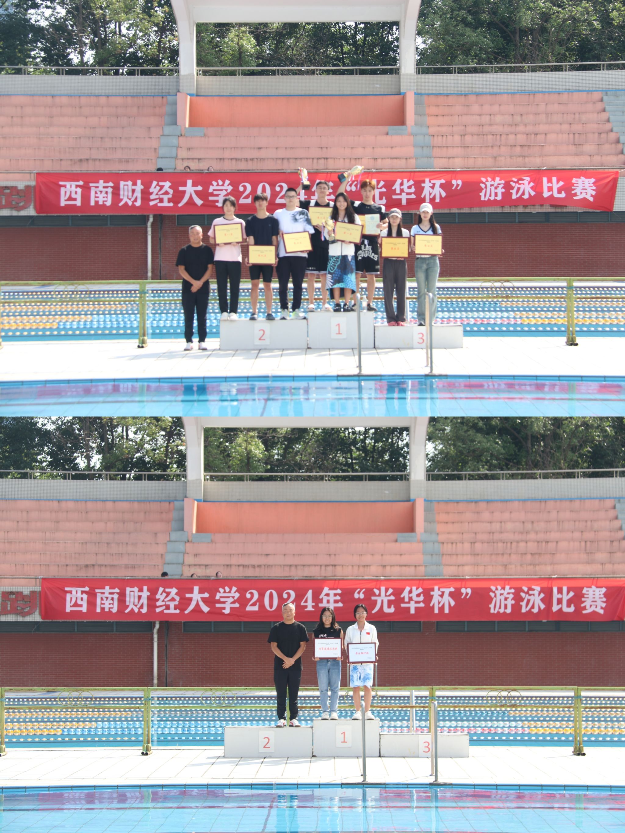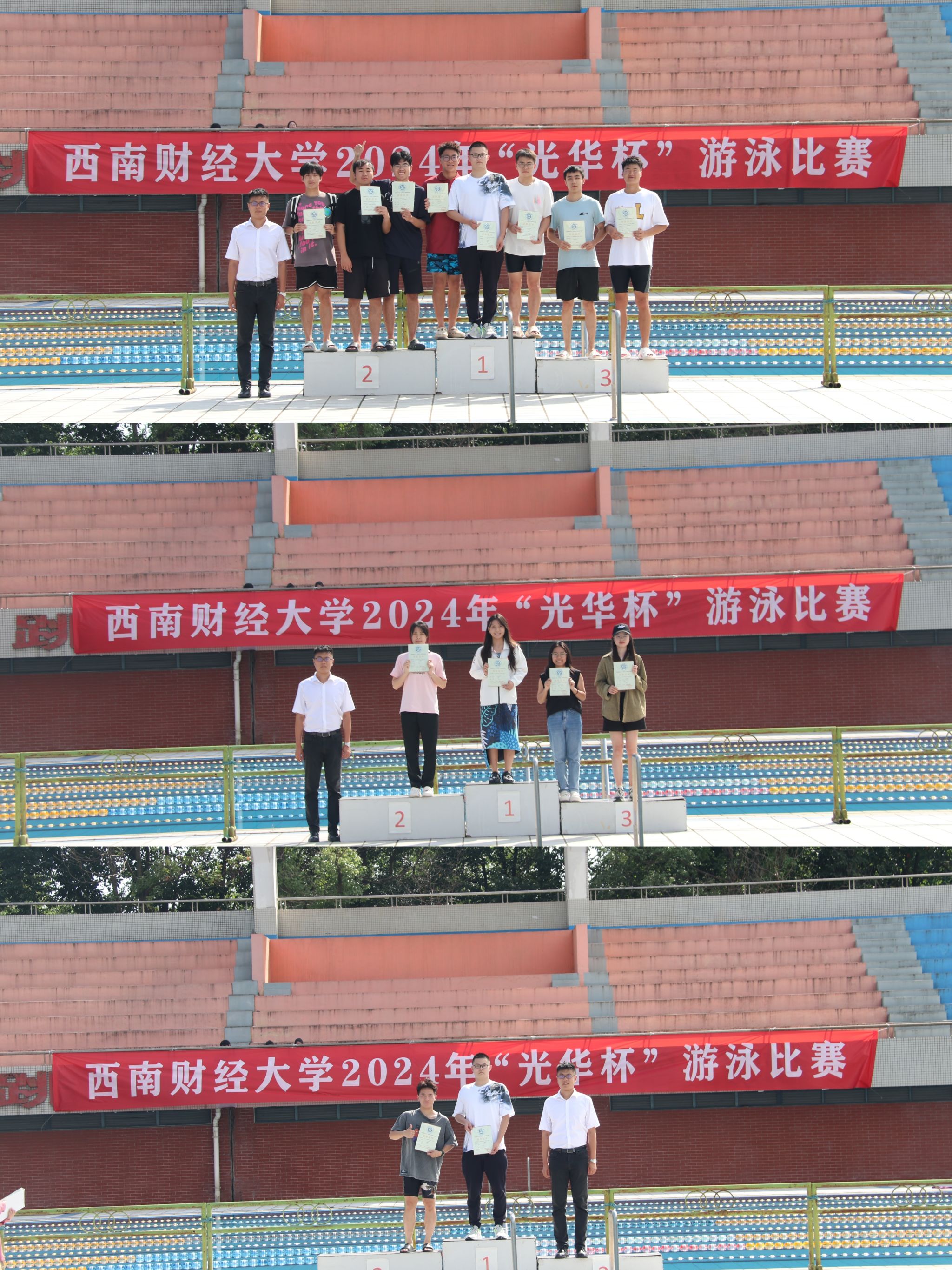 6月11日下午,“礼赞新时代·奋进新征程,迎百年校庆·铸西财辉煌”2024年西南财经大学“光华杯”游泳比赛在柳林校区游泳池圆满举行。新利在线平台党委书记周正宏,副院长陈丛刊,副书记李治为获奖学院以及个人颁发了荣誉证书及奖牌。