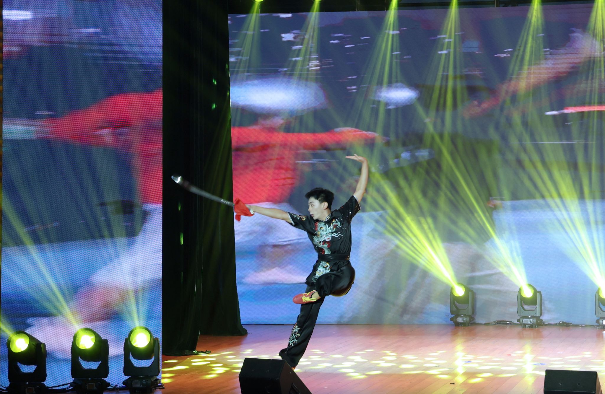 颁奖晚会共分为“忆·逐梦起航”“颂·踔厉奋发”“寄·旭日荣光”3个篇章,各项目冠军队、新利在线平台教师以及体育社团为大家带来精彩纷呈的节目。李永强、李志生和校外嘉宾、相关职能部门负责人、新利在线平台负责人为获奖单位和个人颁奖。校领导与师生热情互动,倾情送出大量健身礼品,点燃全场,将晚会推向高潮。