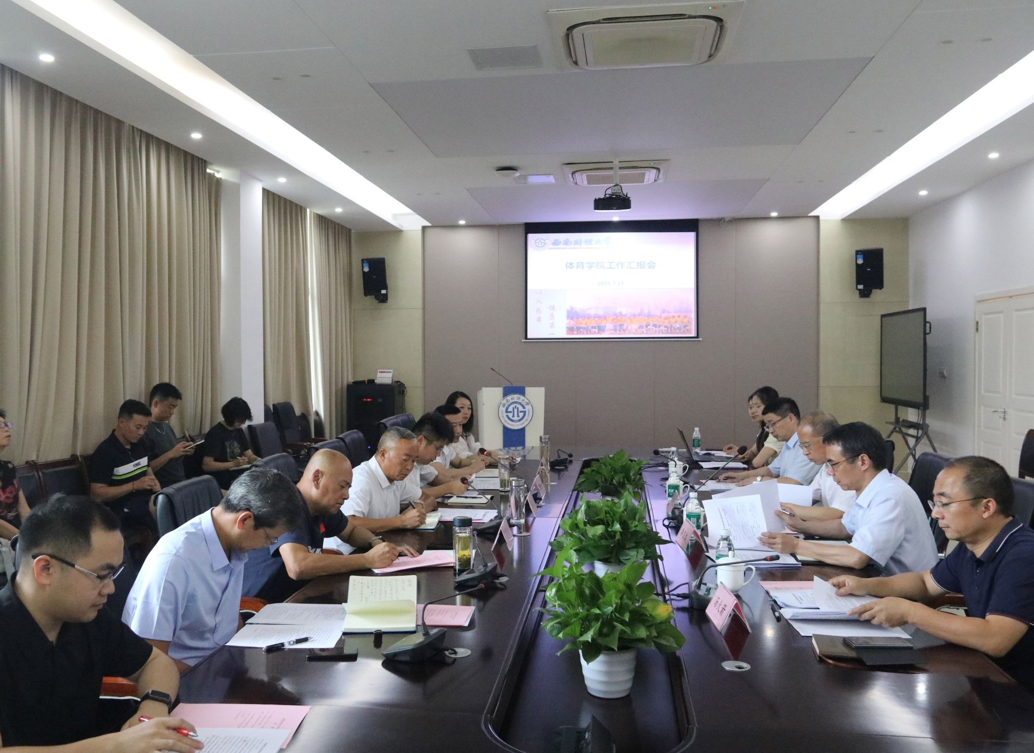 新利在线平台党委书记周正宏主持会议,他代表学院对校领导一行的莅临指导表示衷心感谢。副院长(主持工作)陈丛刊重点围绕新利在线官网、群体竞赛和体育博士专业学位点申报3个主要方面的基本情况、短板与不足、下一步思路和举措进行重点汇报。教师代表蔡兴林、宋羽婷、周腾军等作交流发言。