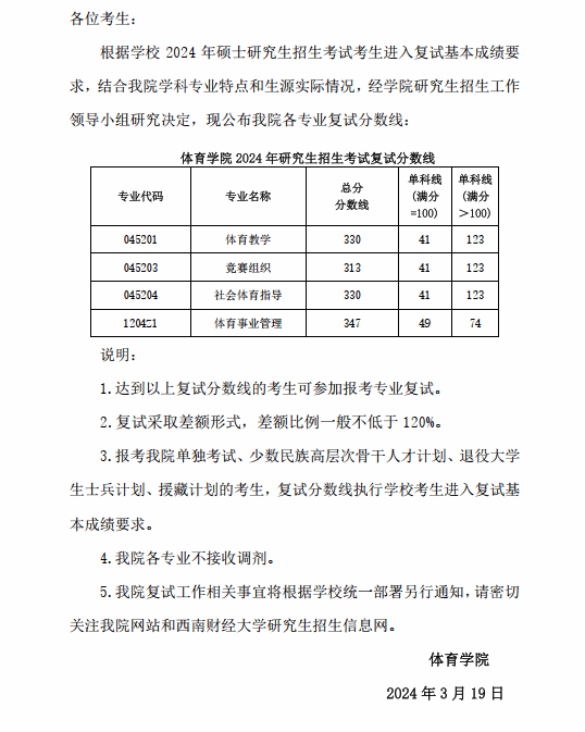【019新利在线平台】新利在线平台关于公布 2024 年硕士研究生招生考试复试分数线的通知.pdf