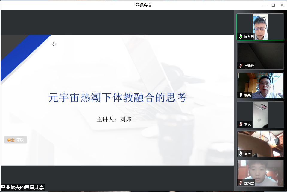 2022年5月27日上午,成都新利在线平台体育经济与产业博士研究生导师刘炜教授通过线上腾讯会议,举办了题为《元宇宙热潮下体教融合的思考》的光华讲坛。体育与经济管理研究中心陈丛刊副教授主持本次讲座,学院研究生、部分教师等共计50余人参加此次讲座。