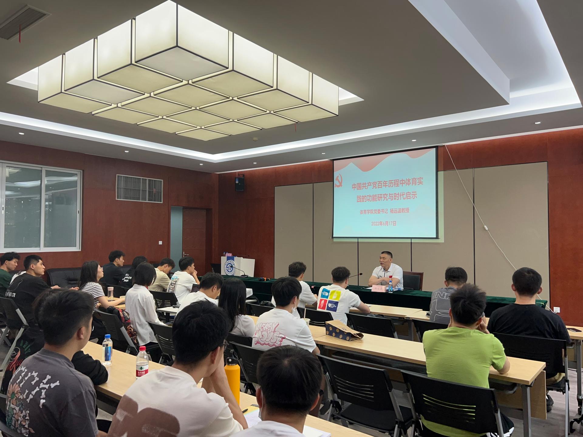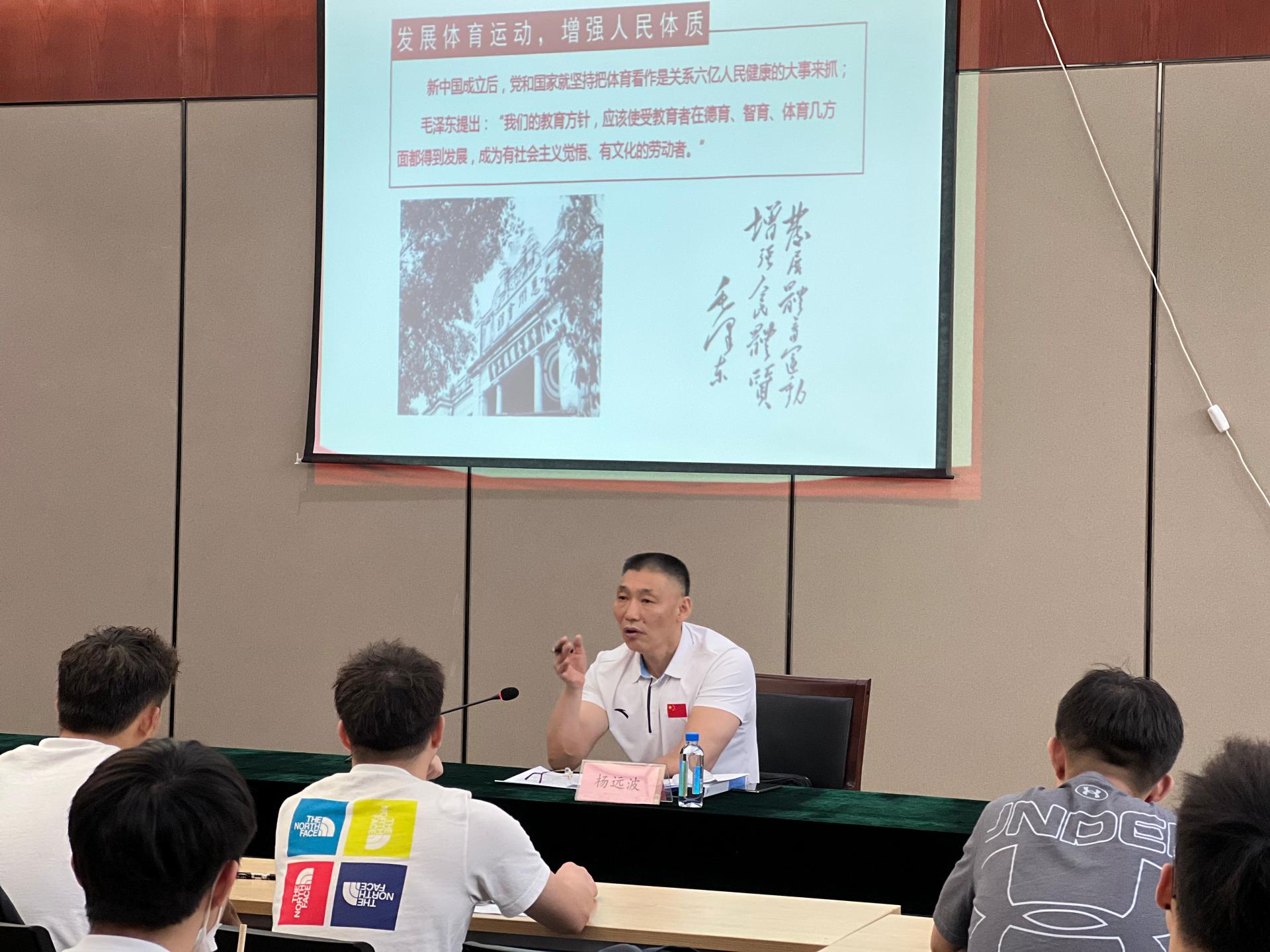 6月17日,新利在线平台党组织书记杨远波在体育馆会议室为全体在校研究生开展了题为《中国共产党百年历程中体育实践的功能研究与时代启示》的专题思政理论课。
