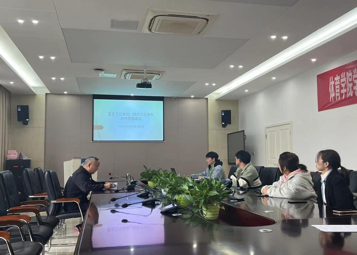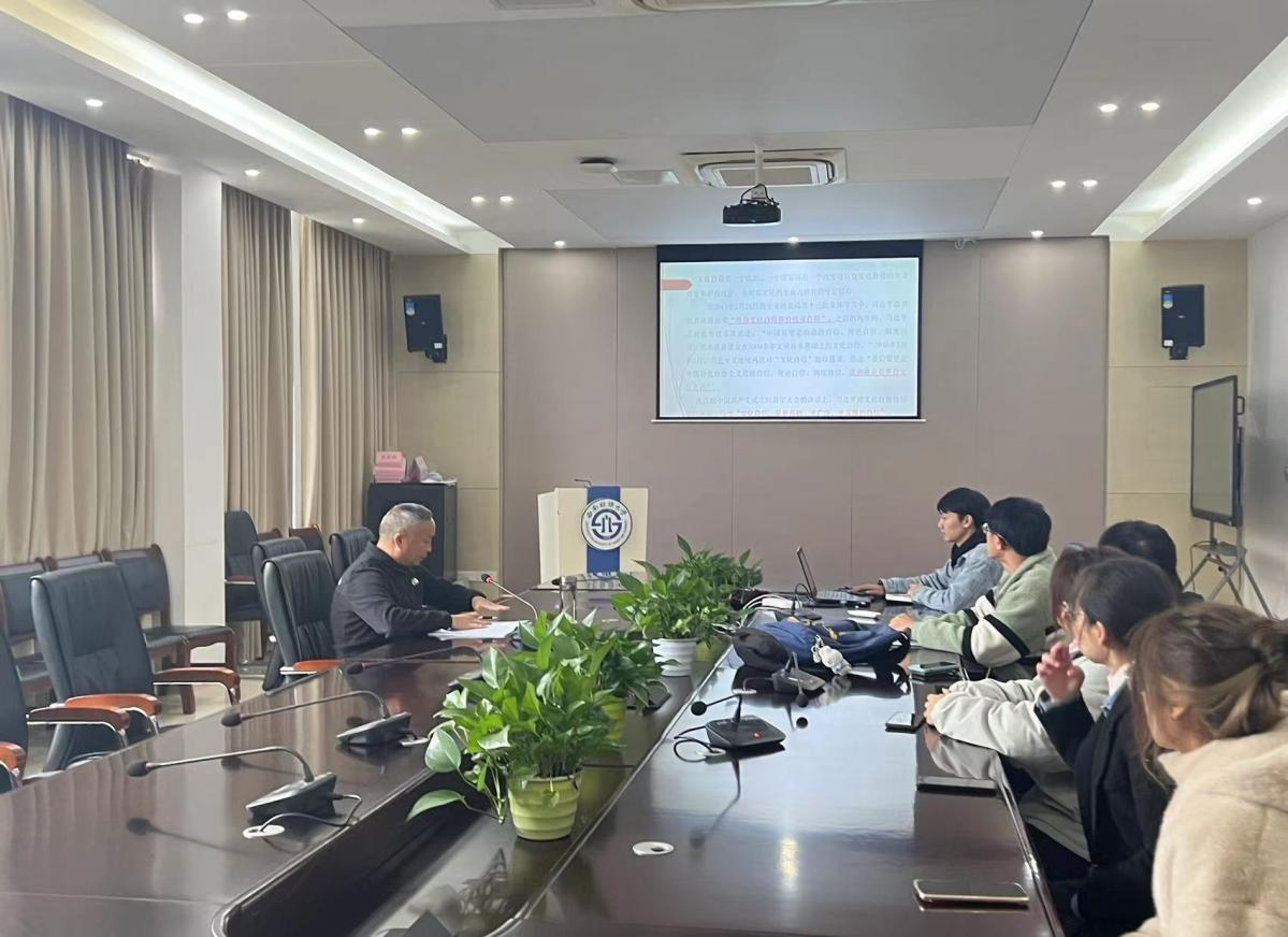 11月15日,新利在线平台党委书记周正宏在游泳池二楼会议室为全体在校学硕研究生开展题为《坚定文化自信,担负文化使命,加快强国建设》的专题思政理论课。